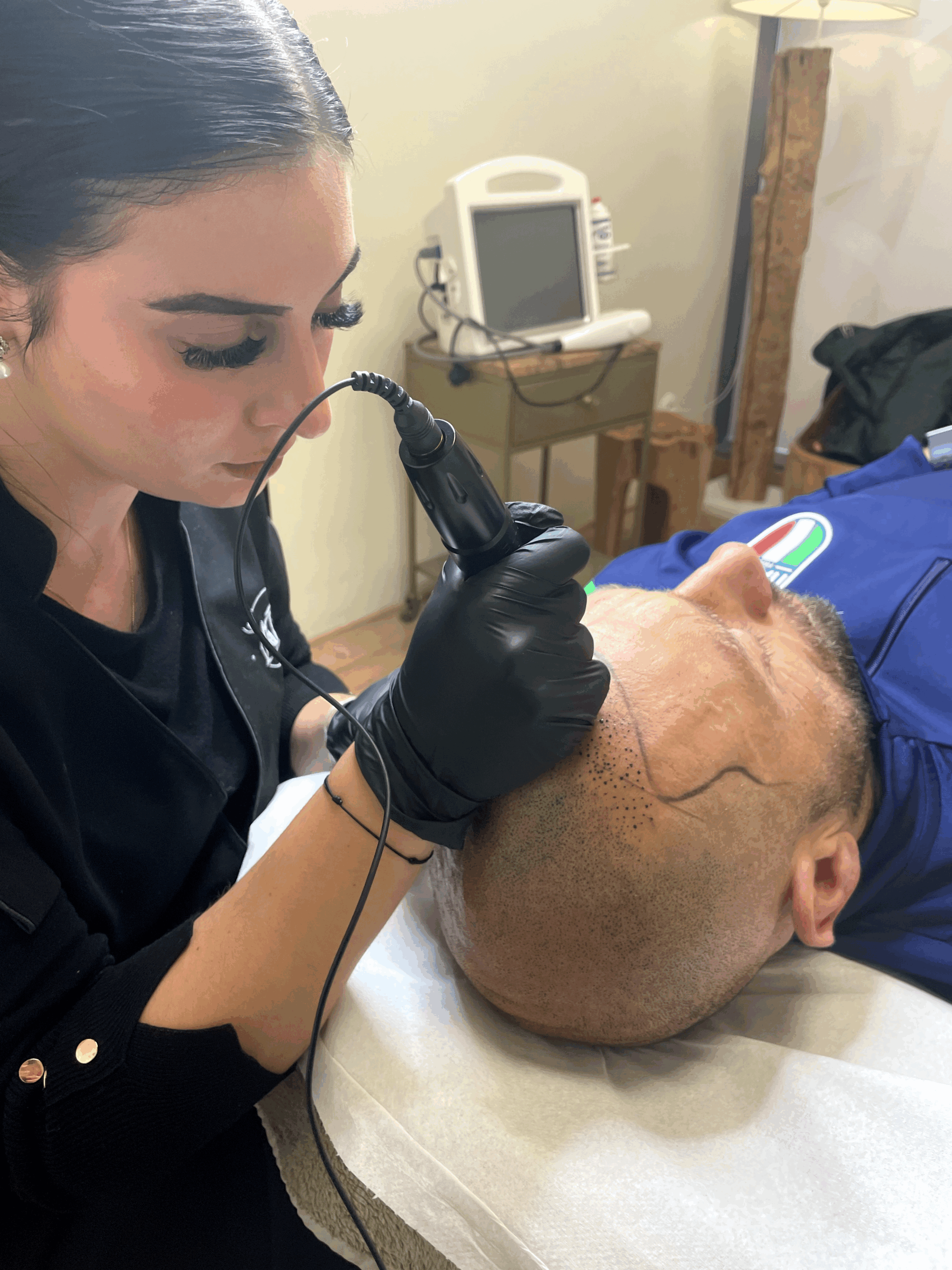 La consultation débute par une évaluation complète de votre cuir chevelu : densité capillaire, zones clairsemées, type d’alopécie, cicatrices éventuelles, phototype de peau. Ce bilan permet de définir la faisabilité du traitement et le rendu souhaité (effet rasé, densification, camouflage…).